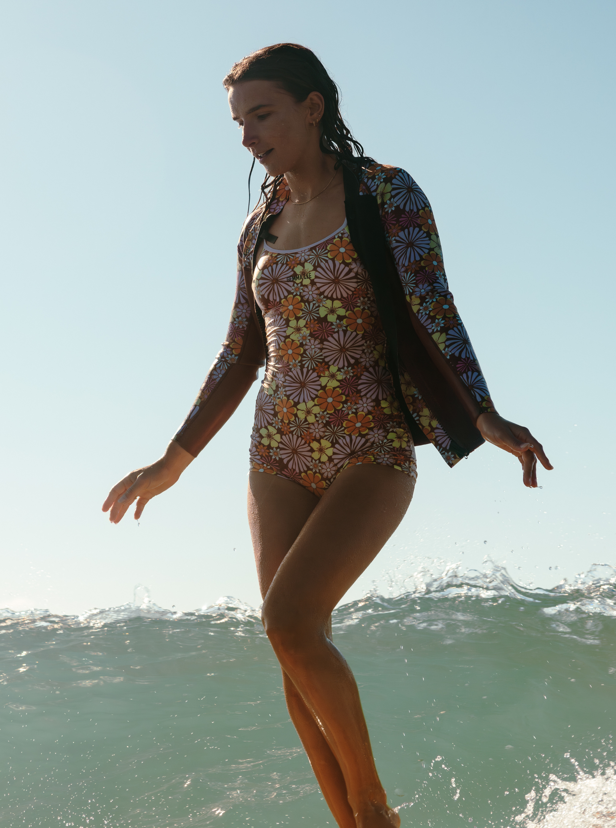 Explore Gemma Lee's stunning collection of women's one-piece swimsuits and long sleeve swimwear. For added sun protection and stylish comfort, our long sleeve swimwear and rash vests come in a range of gorgeous colours. Each piece is crafted with sustainable materials, ensuring durability and environmental responsibility.